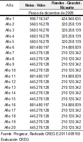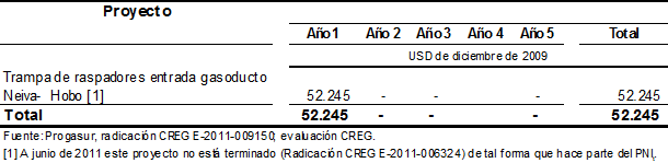 La Comisión, mediante la comunicación S-2011-002589 de fecha 20 de mayo de 2011, solicitó información detallada del proyecto denominado Perforación Dirigida Cruce Río Neiva, dado que la descripción del mismo no se encontraba en la solicitud tarifaria. Progasur respondió esta solicitud de información mediante la comunicación E-2011-005262 de fecha 31 de mayo de 2011.