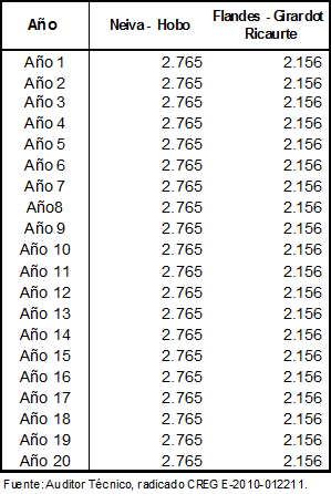 Mediante auto 26 de octubre de 2010 se dio inicio a la actuación administrativa para la aprobación de los cargos regulados para los gasoductos de transporte Neiva – Hobo y Flandes – Girardot – Ricaurte.