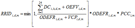 DCi,h,d,m: Disponibilidad Comercial de la planta i en la hora h del día d del mes m, expresado en kilovatios (kW), sin considerar la indisponibilidad respaldada mediante contratos de respaldo, declaraciones de respaldo o cualquier otro anillo de seguridad diferente a Subasta de Reconfiguración de Venta. Este respaldo debió registrarse previamente ante el ASIC. Para los contratos de mercado secundario cuando el precio de bolsa sea mayor que el precio de escasez se considerarán las cantidades despachadas de estos tipos de cubrimiento. Cuando no se cumpla la condición anterior, se considerará la cantidad registrada de estos tipos de cubrimiento. Para la DDV el cubrimiento se tendrá en cuenta cada vez que el generador active el mecanismo.