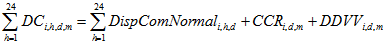DispComNormali,h,d: Disponibilidad Comercial Normal calculada según la metodología definida en la Resolución CREG-024 de 1995 para la planta o unidad de generación i en la hora h del día d.