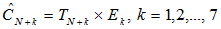 Si N es el instante de la última observación, y ésta cae en domingo, se pronosticará para los días siguientes, lunes, martes,..., domingo, mediante la ecuación.