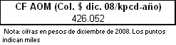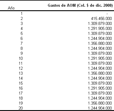 ARTÍCULO 8. CARGOS FIJOS REGULADOS PARA LA REMUNERACIÓN DE LOS GASTOS DE ADMINISTRACIÓN, OPERACIÓN Y MANTENIMIENTO - AOM. A partir de la vigencia de la presente Resolución se aplicarán los siguientes cargos regulados que remuneran los gastos de AOM para el gasoducto definido en el Artículo 2 de la presente Resolución: