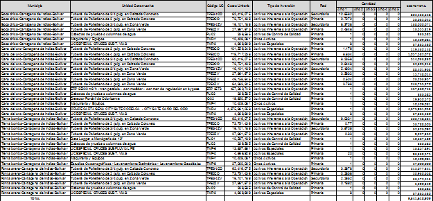 En la mencionada comunicación se allegaron las proyecciones de demanda, las proyecciones de gastos de AOM de distribución y el programa de nuevas inversiones, clasificadas según el listado de unidades constructivas establecido en el Anexo No. 8 de la Resolución CREG 202 de 2013.