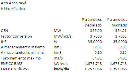 Teniendo en cuenta que para la planta Alto Anchicayá son iguales, la ENFICC calculada con el parámetro declarado de Capacidad Efectiva Neta y la ENFICC calculada con el parámetro de Capacidad Efectiva Neta verificado por Pwc AG,