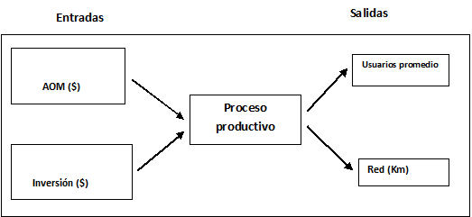 El análisis DEA se realiza teniendo en cuenta el siguiente proceso productivo: