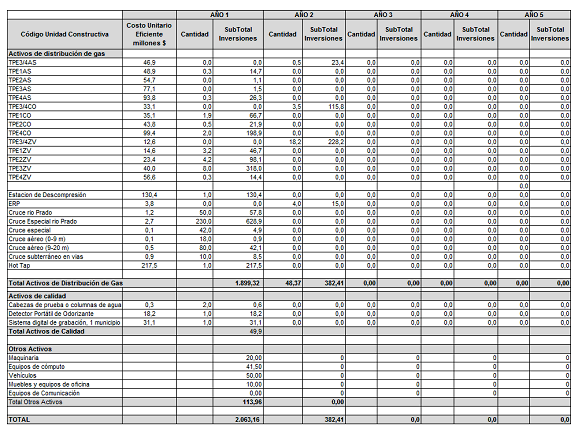 La Empresa, mediante la comunicación en cita reportó a la CREG las proyecciones de demanda, las proyecciones de gastos de AOM de distribución y el programa de nuevas inversiones, clasificadas según el listado de unidades constructivas establecido en el Anexo No. 1 de la Resolución CREG 011 de 2003.