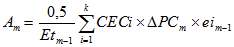 Etm-1: Energía total entregada al Sistema de Distribución en el mes m-1, por las n plantas del Parque de Generación. Este valor se expresa en kilovatios hora (kWh).