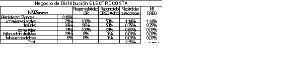 Para lo que son “conexiones ilegales” y “fraudes”, que son fenómenos de difícil identificación en forma separada y que tienen mayor tendencia en áreas de subnormalidad y menor desarrollo, la relación con y sin la empresa es de 1,3 veces. Por ser el valor tan cercano a la unidad, no se considera necesario hacer ajuste alguno al porcentaje de pérdidas no técnicas reconocidas por este concepto.