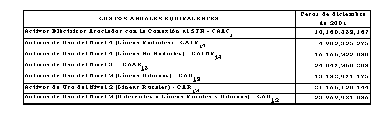 a) Costo anual para remunerar los activos de conexión al STN y de los Niveles de Tensión 4, 3 y 2, sin aplicar los criterios de eficiencia de que trata el Anexo No 8 de la Resolución CREG 082 de 2002:
