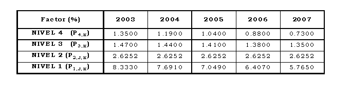 Parágrafo. Los factores de que trata el presente Artículo se aplicarán de acuerdo con la siguiente expresión: