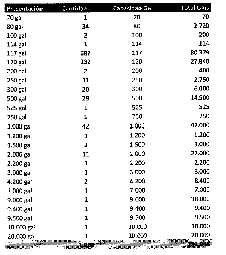 El nuevo reporte contempla la siguiente cantidad de tanques: