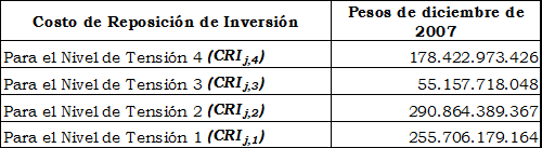 “Artículo 5. Costos de reposición de la inversión. Los costos de reposición de la inversión del OR Centrales Eléctricas del Norte de Santander S.A. E.S.P. para cada nivel de tensión, calculados en la forma establecida en la Resolución CREG 097 de 2008, son los siguientes: