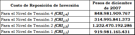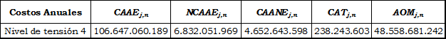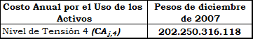 Teniendo en cuenta lo expuesto, para el nivel de tensión 4 se obtienen las siguientes variables, expresadas en pesos de diciembre de 2007:
