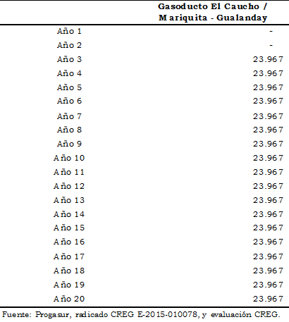 Gasoducto | Año 1 | Año 2 | Año 3 | Año 4 | Año 5 |