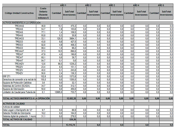 La Empresa, mediante las comunicaciones citadas, reportó a la CREG las proyecciones de demanda, las proyecciones de gastos de AOM de distribución y el programa de nuevas inversiones, clasificadas según el listado de unidades constructivas establecido en el Anexo No. 1 de la Resolución CREG 011 de 2003.