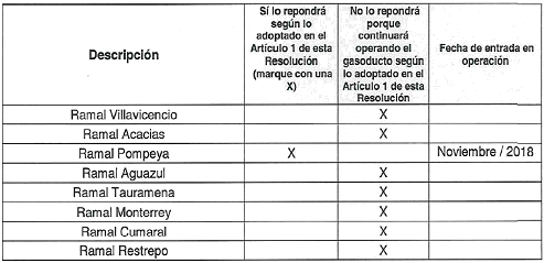 De la información de la anterior tabla, nótese que en el caso de los 8 gasoductos de la presente actuación administrativa sólo corresponde el retiro de los valores en la columna con la categoría ‘ ’.