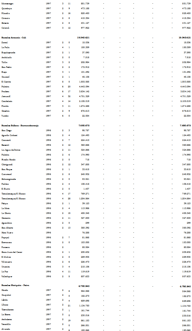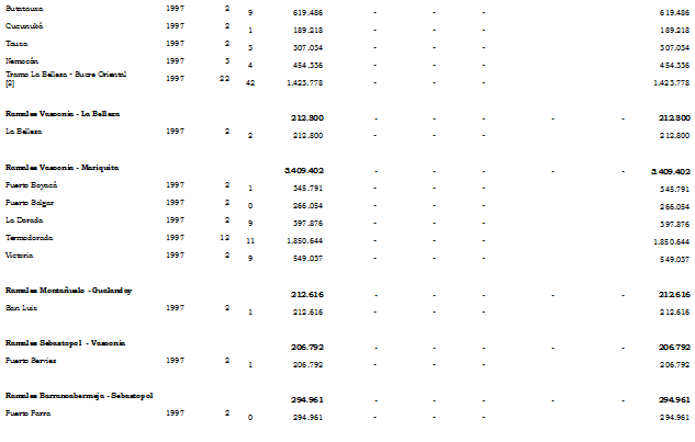 | Quetame - Puente Quetame | 1995 | 2 | 3 | 386.190 | - | - | - | | | 386.190 |