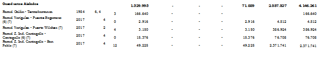 | Ramales Apiay - V/cio - Ocoa | | | | 2.469.403 | - | - | - | 2.392.339 | 3.018.916 | 3.095.980 |
