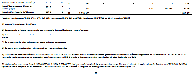 | Ramales Cusiana - Apiay | | | | 5.110.710 | - | - | - | 4.718.194 | 7.006.641 | 7.399.157 |