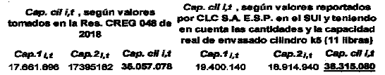 El resultado de no haber tomado en cuenta la capacidad real y la totalidad de los Cilindros adquiridos y reportados al SUI de parte de COMBUSTIBLES LÍQUIDOS DE COLOMBIA S.A. E.S.P. género como resultado una diferencia de 3.258.002 Kilogramos en la determinación de la variable "Cap. cil i,t. definida en la fórmula del parágrafo 3, artículo 8 de la Resolución CREG 063 de 2016, tal como se puede observar a continuación: