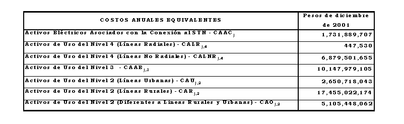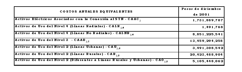 a) Costo anual para remunerar los activos de conexión al STN y los Niveles de Tensión 4, 3 y 2, sin aplicar los criterios de eficiencia de que trata el Anexo No 8 de la Resolución CREG 082 de 2002: