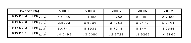 Parágrafo. Los factores de que trata el presente Artículo se aplicarán de acuerdo con la siguiente expresión: