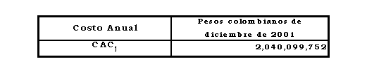 CAUCA S. A. E.S.P., en cada año del período tarifario, serán los siguientes, en pesos colombianos de diciembre de 2001: