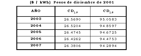 - Cargo de transición para el primer mes de aplicación del Cargo Máximo de Nivel de Tensión 2 aprobado en esta Resolución: 42.9042 $/kWh (pesos de diciembre de 2001).