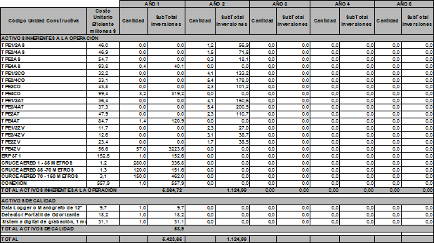 2.1. Inversión Existente: Como inversión existente no se reconoce monto alguno, por tratarse de un mercado nuevo, de conformidad con la información presentada por la Empresa.