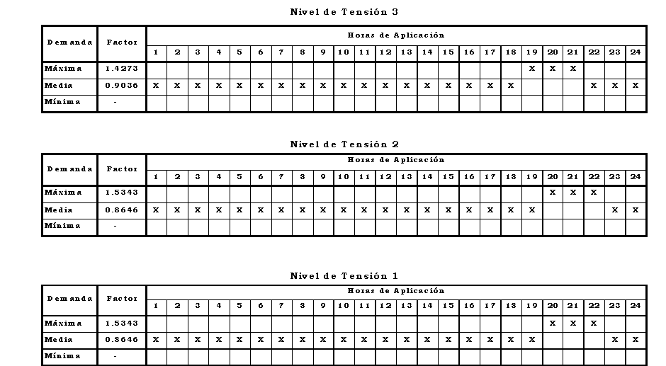 Que a partir de las curvas de carga típicas por Nivel de Tensión presentadas por el OR en la solicitud de aprobación de cargos, la Comisión calculó, siguiendo las disposiciones del Anexo No 9 de la Resolución CREG 082 de 2002, los factores multiplicadores que permiten establecer los Cargos Monomios Horarios a partir de los Cargos Monomios correspondientes;