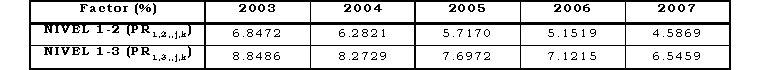 b) Factores para referir las medidas en el Nivel de Tensión 1 a los niveles de tensión 2 y 3: