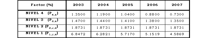 Parágrafo. Los factores de que trata el presente Artículo se aplicarán de acuerdo con la siguiente expresión: