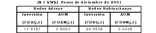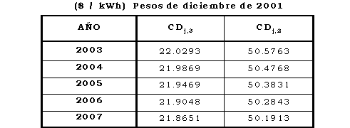 - Cargo de transición para el primer mes de aplicación del Cargo Máximo de Nivel de Tensión 2 aprobado en esta Resolución: 31.8971 $/kWh (pesos de diciembre de 2001).