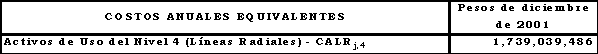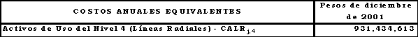 a) Costo anual para remunerar los activos de los Nivel de Tensión 4, sin aplicar los criterios de eficiencia de que trata el Anexo No 8 de la Resolución CREG 082 de 2002: