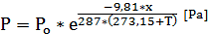 Presión atmosférica: se calcula en base a la altura sobre el nivel del mar y a la temperatura del lugar mediante la siguiente ecuación.