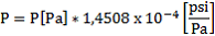 Conversión de Pascales a psi. Para convertir la presión atmosférica calculada con la ecuación anterior de pascales a unidades de psi se utilizará la siguiente ecuación: