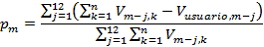 Vusuario,m-j: es la sumatoria de los volúmenes facturados a los usuarios en el mes m-j, corregidos por compresibilidad, y a condiciones estándar de presión y temperatura.