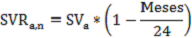| : | Número de meses transcurridos desde la entrada en vigencia de esta resolución y el mes n. El valor máximo de esta variable es 24. |