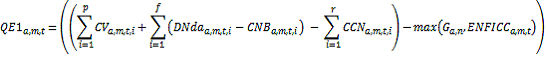 | : | Superávit por valorización remanente, de la empresa a, calculado para el mes n. |