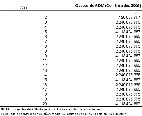 NOTAS: Estos cargos están expresados en dólares del 31 de diciembre de 2005. Las comas indican decimales