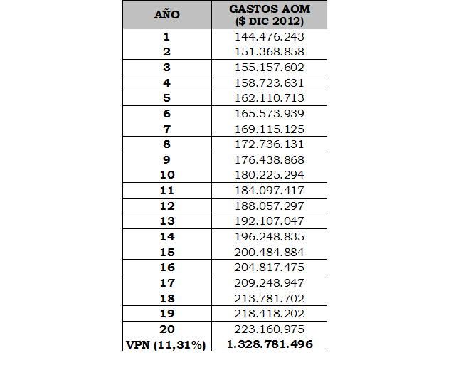En el Anexo 3 se presentan los gastos de AOM para el Horizonte de Proyección: