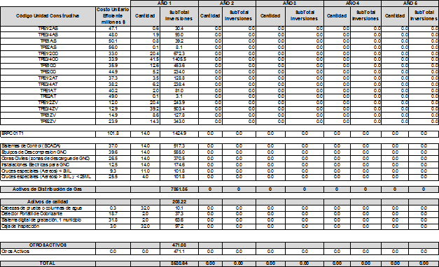 La Empresa, mediante la comunicación en cita reportó a la CREG las proyecciones de demanda, las proyecciones de gastos de AOM de distribución y el programa de nuevas inversiones, clasificadas según el listado de unidades constructivas establecido en el Anexo No. 1 de la Resolución CREG 011 de 2003.