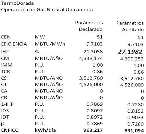 En primer lugar, es claro que la ENFICC asignada a TERMODORADA, utilizando los parámetros reportados por la empresa, no es mayor que aquel que resulta de utilizar los parámetros del Auditor incluyendo el IHF y los demás calculados y utilizados por el Auditor; por lo tanto, debe procederse a cerrar la actuación administrativa.
