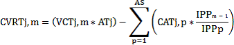 CVRTj,m: Fracción del costo máximo del terreno no remunerado de la subestación j, en el mes m, en pesos corrientes.