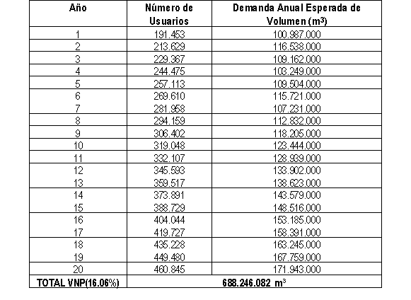 ARTÍCULO 3°. Demandas Esperadas de Volumen. Para el cálculo tarifario se utilizó la Demanda de Volumen para el horizonte de proyección presentada en el Anexo 2 de esta Resolución.