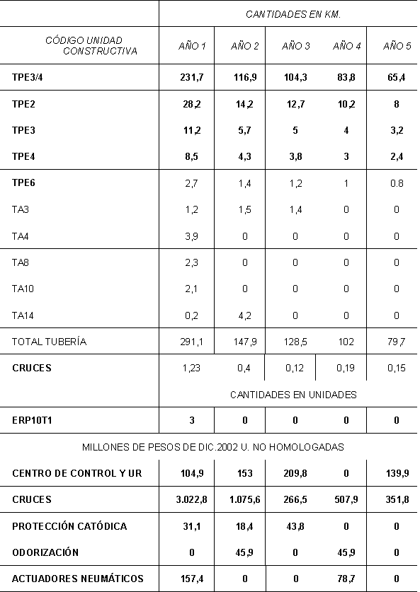 | CÓDIGO UNIDAD CONSTRUCTIVA | Cantidades (Km.) | Valor Total |