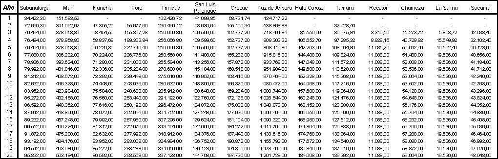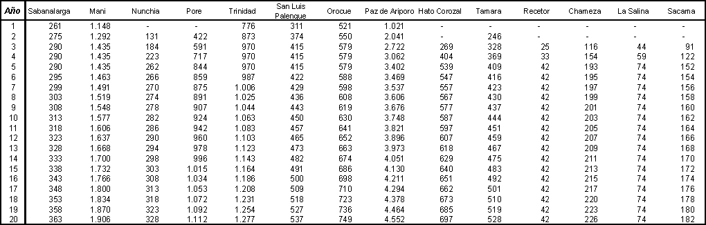 | Sabanalarga, Maní, Nunchía, Pore, Trinidad, San Luis de Palenque, Orocué, Paz de Ariporo, Hatocorozal, Támara, Recetor, Chámeza, La Salina y Sácama en el Departamento de Casanare | 2.805,09 |