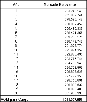 Mercado Relevante | Cargo Máximo Base de Comercialización ($/factura) |