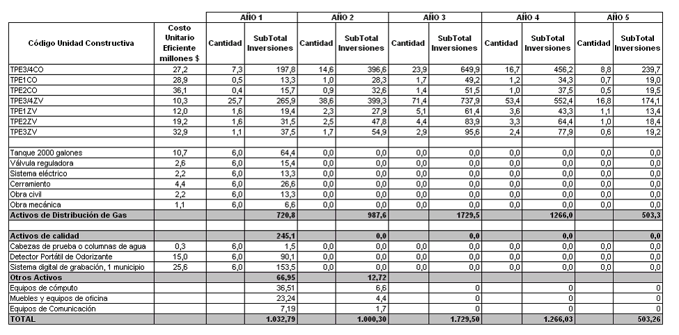 Que la empresa ECOSEP S.A. E.S.P., mediante comunicación con radicado CREG E-2003-0010645 del 21 de noviembre, reportó a la CREG las proyecciones de demanda, las proyecciones de gastos de AOM de distribución y el programa de nuevas inversiones, clasificadas según el listado de unidades constructivas establecido en el Anexo No. 1 de la Resolución CREG 011 de 2003;