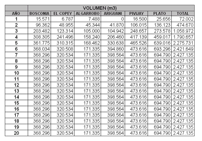 ARTÍCULO 3°. Demandas Esperadas de Volumen. Para el cálculo tarifario se utilizó la Demanda de Volumen para el horizonte de proyección presentada en el Anexo 2 de esta Resolución.
